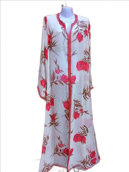 Sueña con una boda de verano caprichosa con nuestro vestido de novia caftán marroquí floral de verano.
