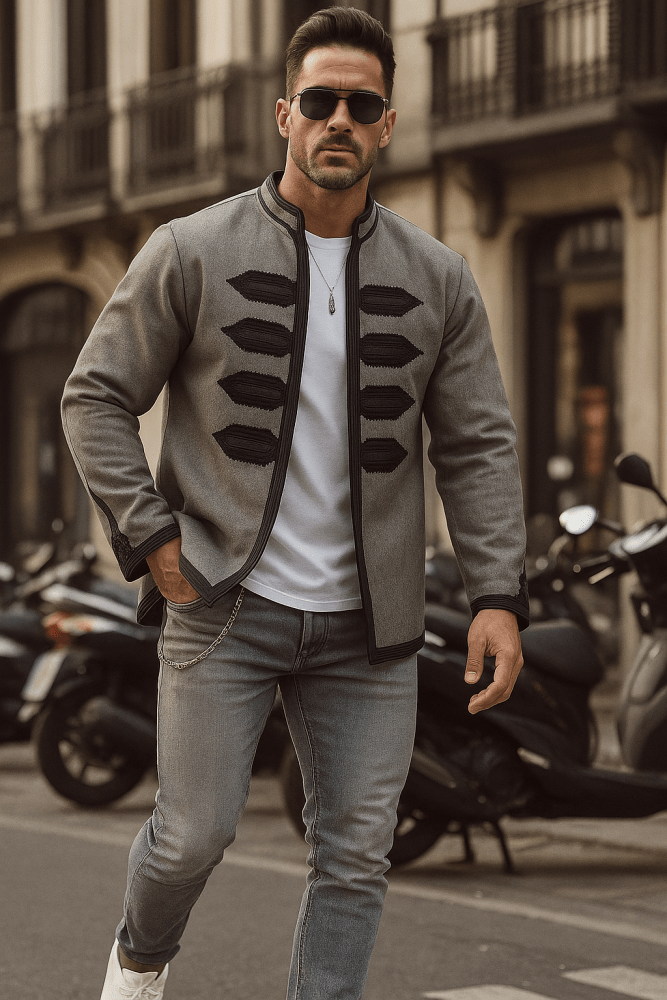 Chaqueta de mezcla de cachemira marroquí bordada para hombre