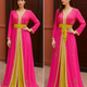 Lujoso caftán fucsia para damas y niñas, diseños de los años 90, lustroso, adecuado para ocasiones elegantes y lujosas. Hecho de tela de tul muy ligera bordada a mano que brilla con las caídas y cada movimiento, con un hilo dorado alrededor del vestido caftán y en el extremo de las mangas. Perfecto como vestido de novia, vestido de fiesta o cualquier otro evento especial.