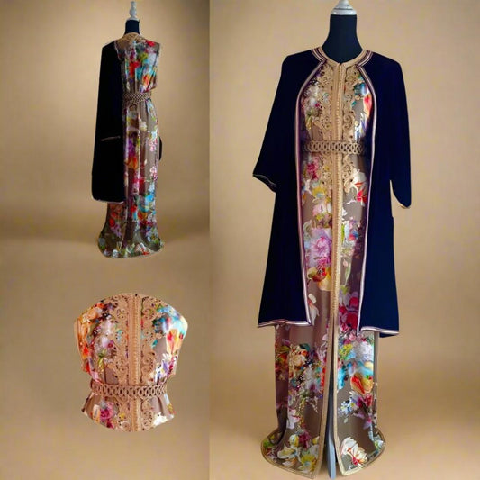 Nouvelle robe caftan marocaine LEOPARD avec ceinture