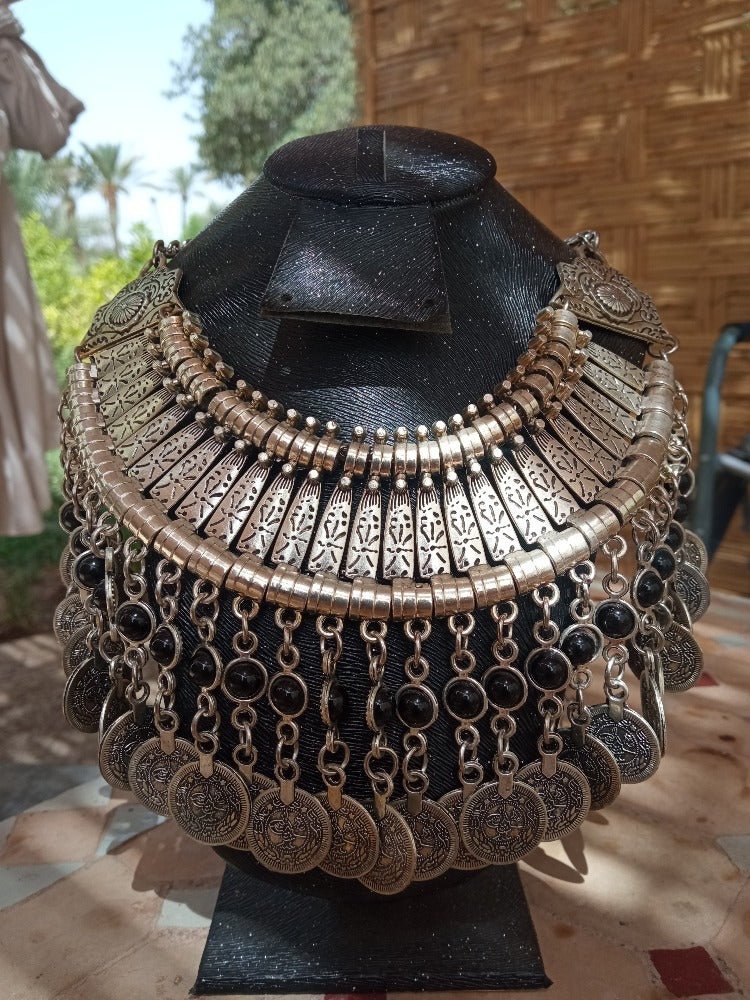 🌍 Un voyage à travers le Maroc : avec ce superbe collier, vous emportez avec vous un morceau des paysages enchanteurs et de la culture captivante du Maroc. Laissez les breloques et les pièces vous guider dans un voyage visuel à travers les souks animés et les oasis cachées du sud marocain.