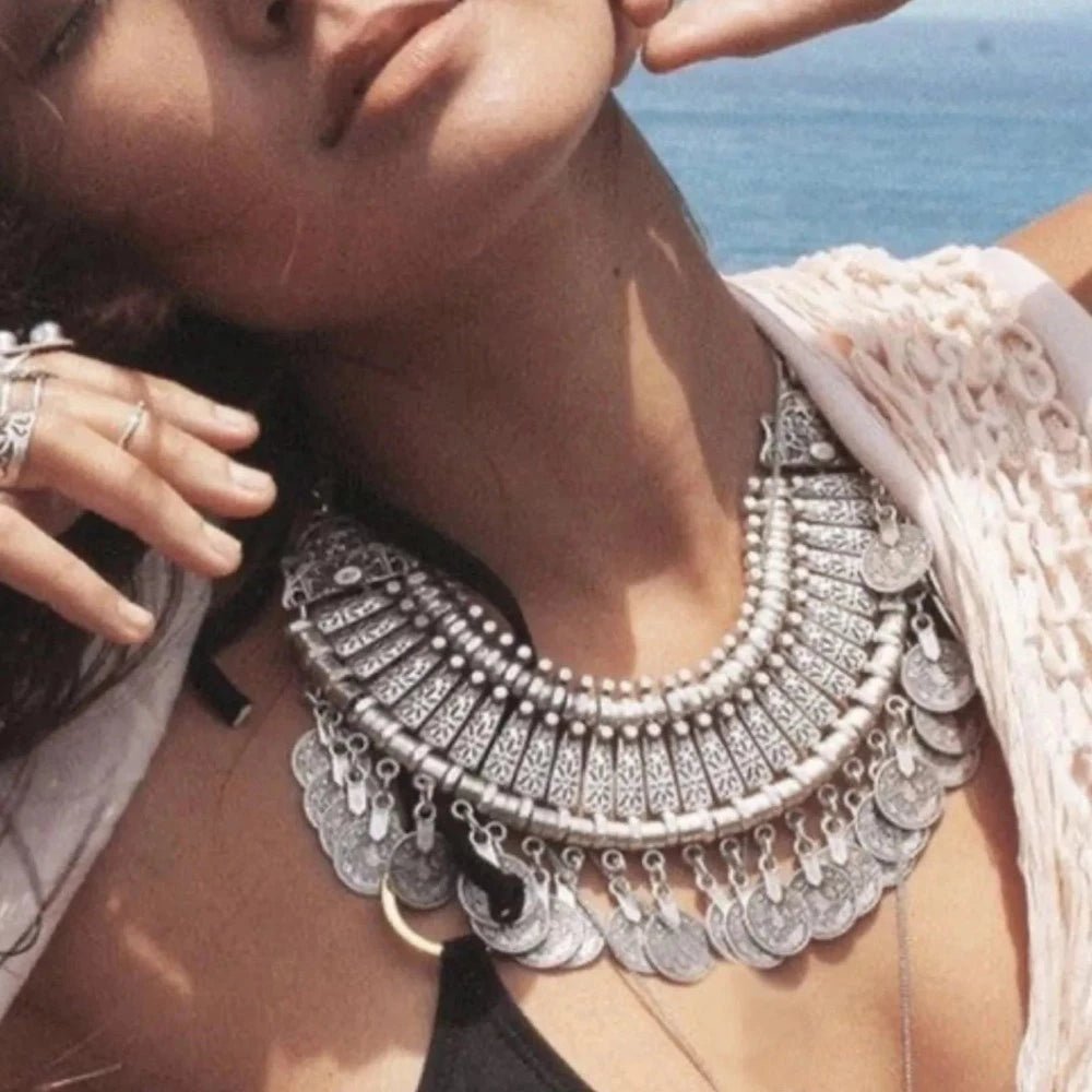 Découvrez les secrets de l'élégance et du charme marocains - commandez dès aujourd'hui votre collier marocain berbère plaqué argent avec des pièces orientales ! Le stock est limité. Cliquez sur « Ajouter au panier » et parez-vous de la mystique du Sud marocain. ✨🏺