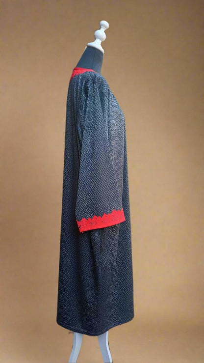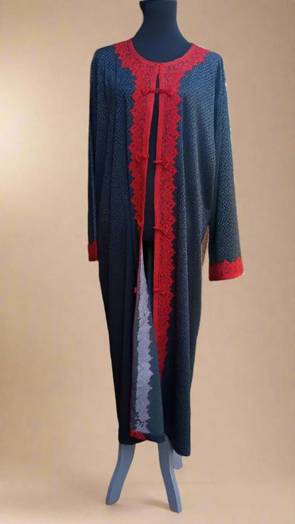 Enveloppez-vous de style avec notre long cardigan gris d'automne, orné d'une broderie orange vibrante.