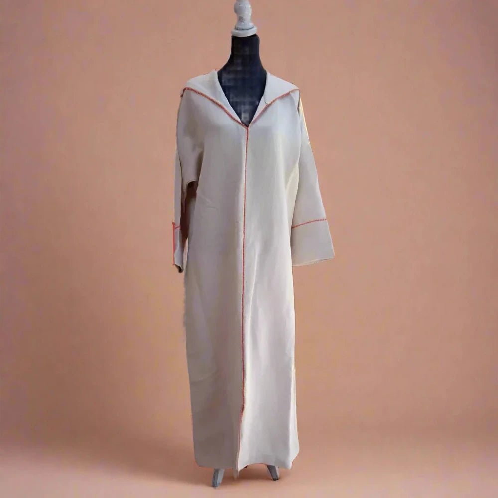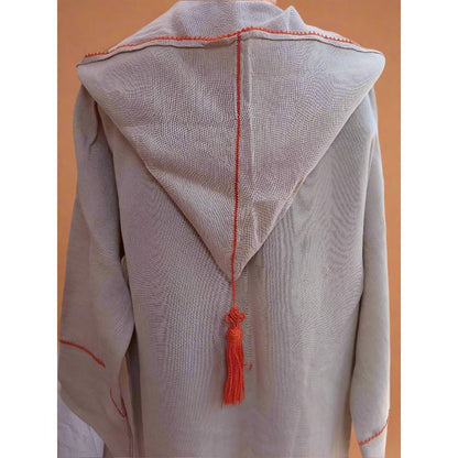 Découvrez la beauté des fibres naturelles et du savoir-faire artisanal dans cette exquise djellaba en lin – un ajout intemporel à votre garde-robe