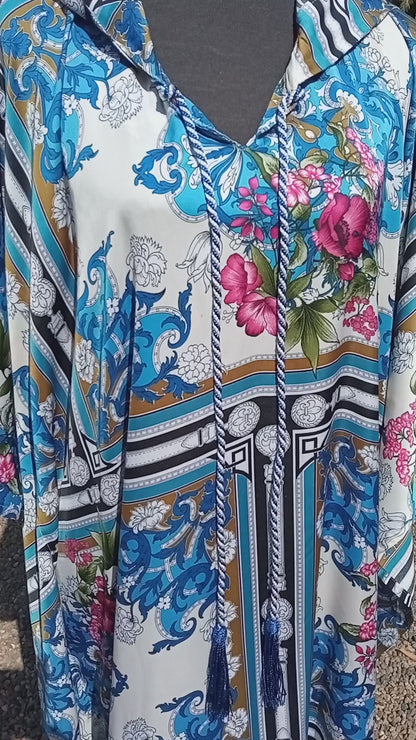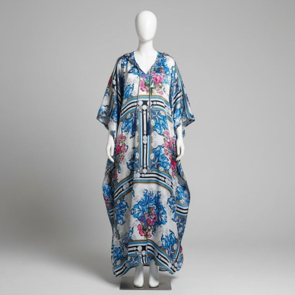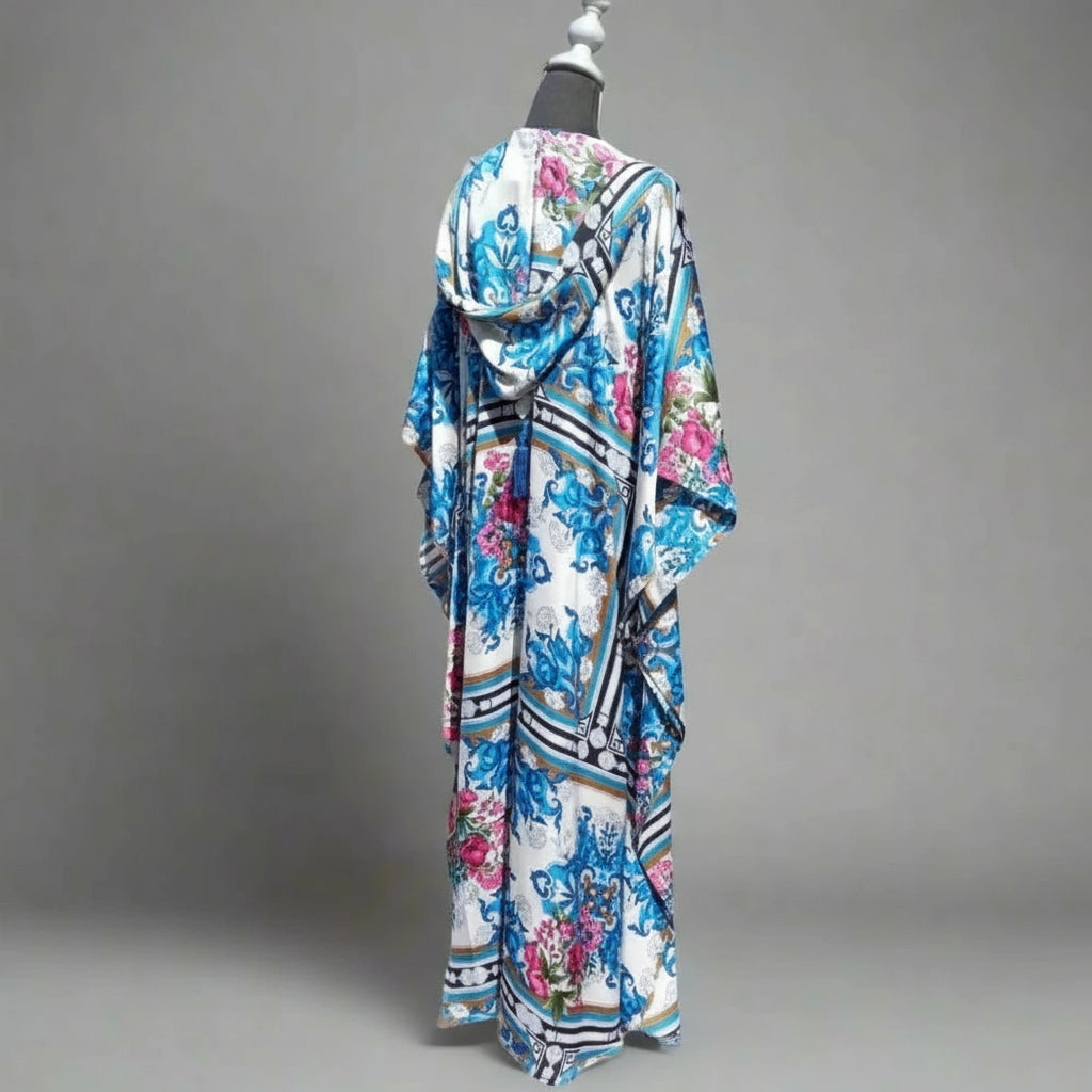 Découvrez notre superbe caftan à capuche imprimé fait main, un chef-d'œuvre de taille unique qui allie confort et style sans effort. Fabriqué avec amour et souci du détail, ce caftan est une véritable œuvre d'art, conçue pour mettre en valeur votre sens unique de la mode.