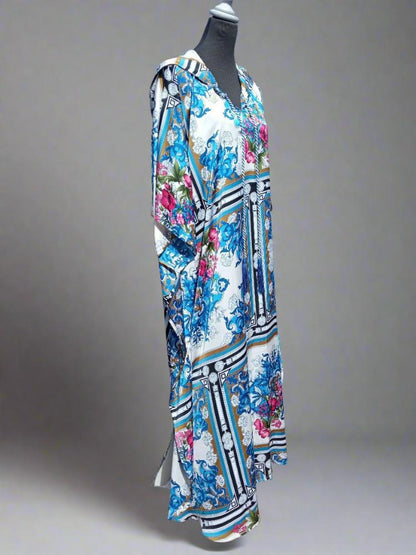 Ce caftan passe sans effort du jour à la nuit, ce qui en fait le complément parfait de votre garde-robe. Que vous vous prélassiez à la maison, que vous vous promeniez sur la plage ou que vous participiez à une réunion décontractée, vous dégagerez élégance et charme dans ce vêtement polyvalent.