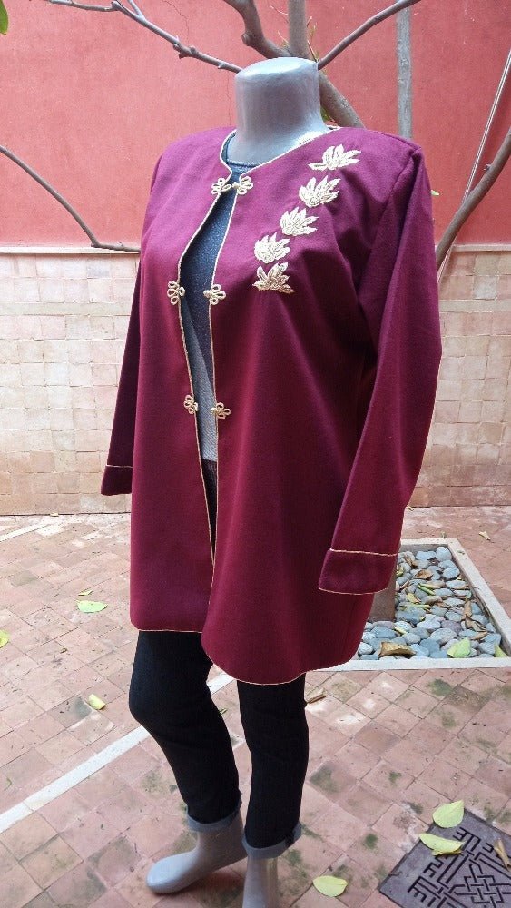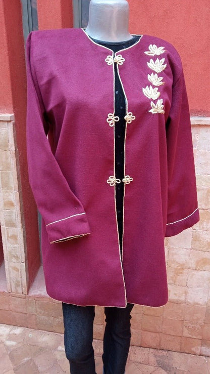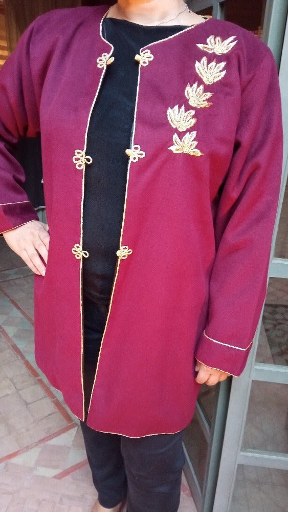 Cachemire Bordeaux (broderie dorée avec soie noire à l'intérieur, avec boutons dorés faits main)