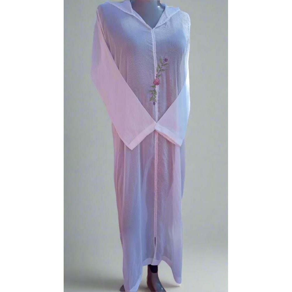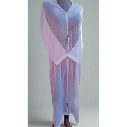 Un joli caftan marocain transparent à capuche brodé avec des matériaux de haute qualité fabriqués à la main, conçu par un membre de notre Heritage Handmade
