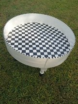 Fabriquée à la main à partir de bois de cèdre de haute qualité, cette table met en valeur la beauté naturelle et la durabilité du matériau. La palette de couleurs contrastées noir et blanc crée une déclaration visuelle audacieuse, tandis que les motifs à carreaux apportent une touche moderne à son esthétique générale. Chaque pièce est méticuleusement peinte à la main par des artisans qualifiés, ce qui garantit qu'aucune table ne soit exactement identique, faisant de la vôtre une pièce véritablement unique en son genre.