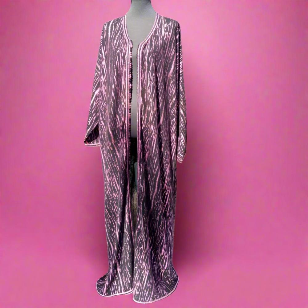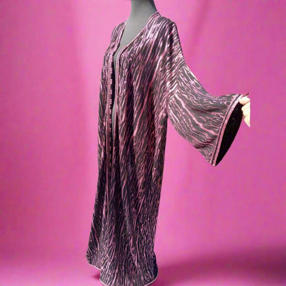 Offrez-vous la quintessence de l'élégance marocaine avec notre caftan marocain noir et rose fait main, un mélange exquis de tradition et de style contemporain.