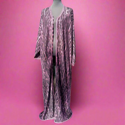 Rehaussez votre garde-robe avec l'attrait de ce caftan ouvert sur le devant, méticuleusement conçu pour captiver.