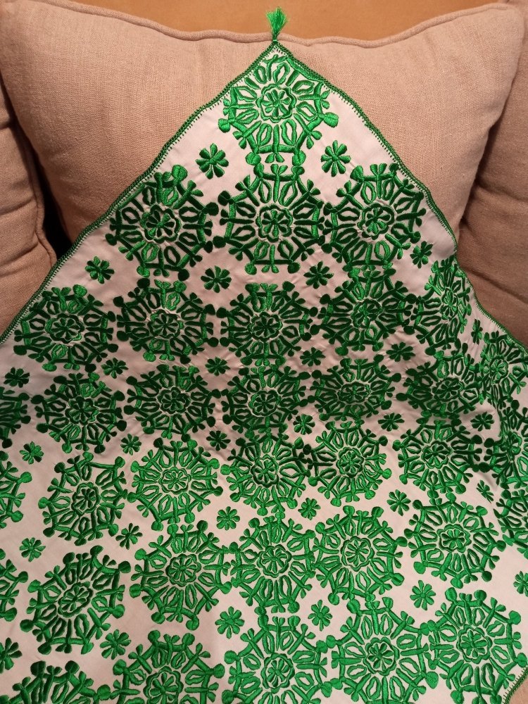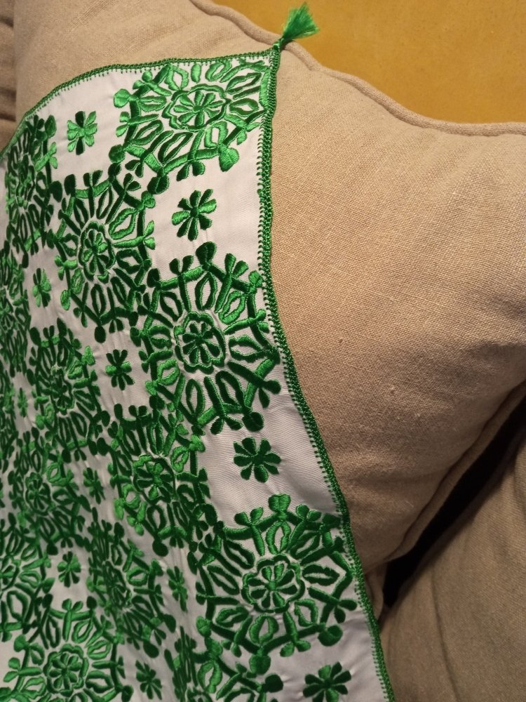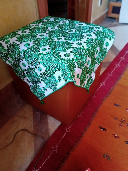 Avec un magnifique motif de broderie marocaine verte tout autour fait à la main, cette housse de canapé rendra sûrement votre pièce magnifique.