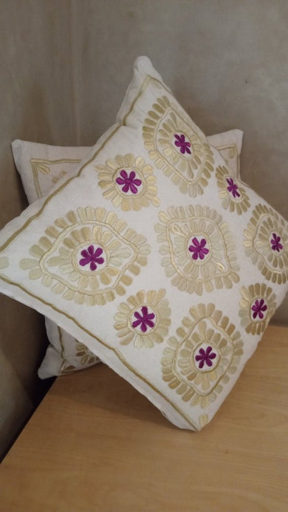 Lot de 2 housses de coussin dorées et violettes 15*15