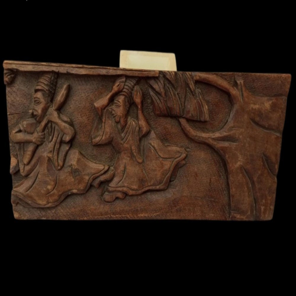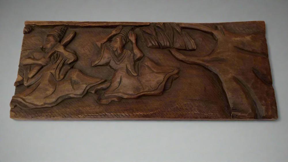 Panneau mural asiatique vintage sculpté à la main chez Heritage Handmade