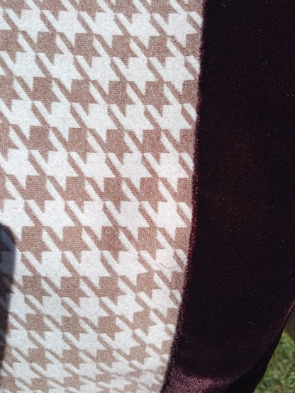 Manteau long en cachemire à motif pied-de-poule et velours pour femme - Trench-coat marron