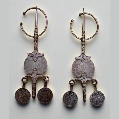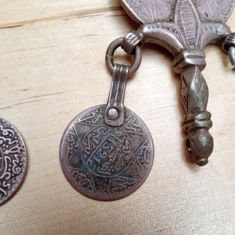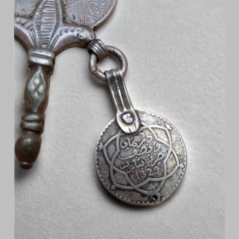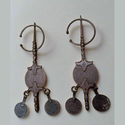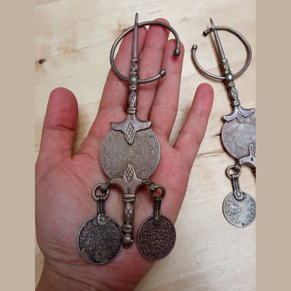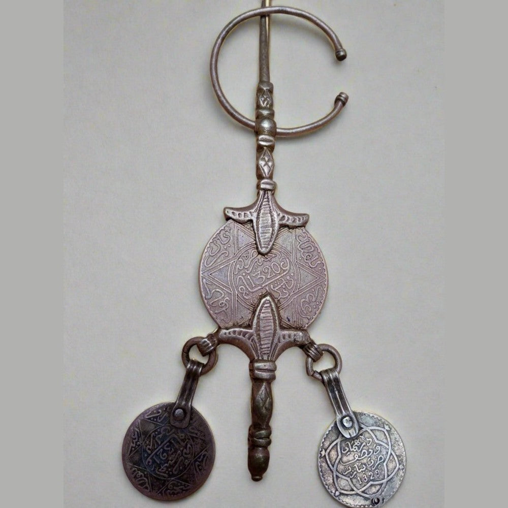 Fibula Pair Moroccan Berber Silver Fibula with Antique Coins