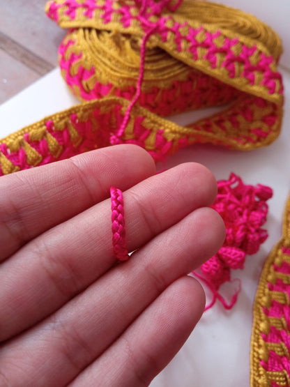 • Lot of 5m of Vintage large Handwoven Hot pink and yellow Sfifa / Gallon