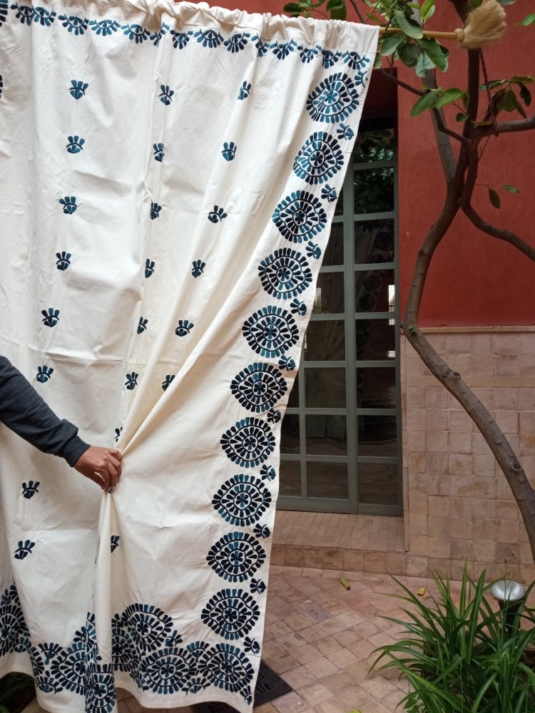 Customized Hand-Embroidered Moroccan Linen Curtain