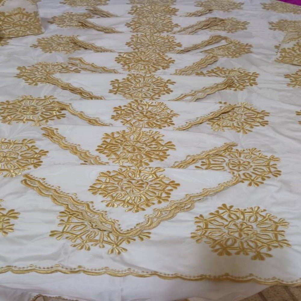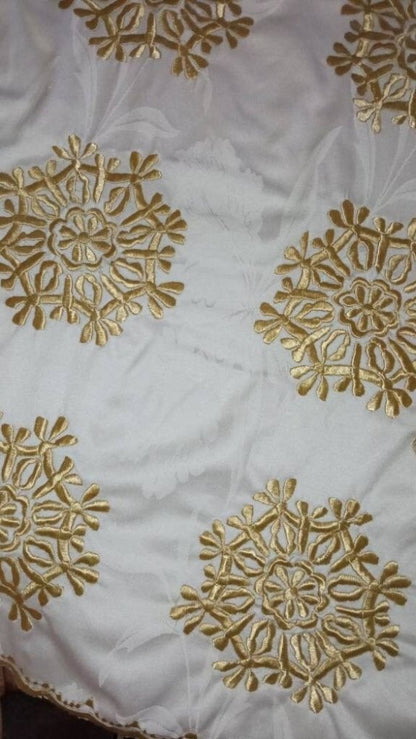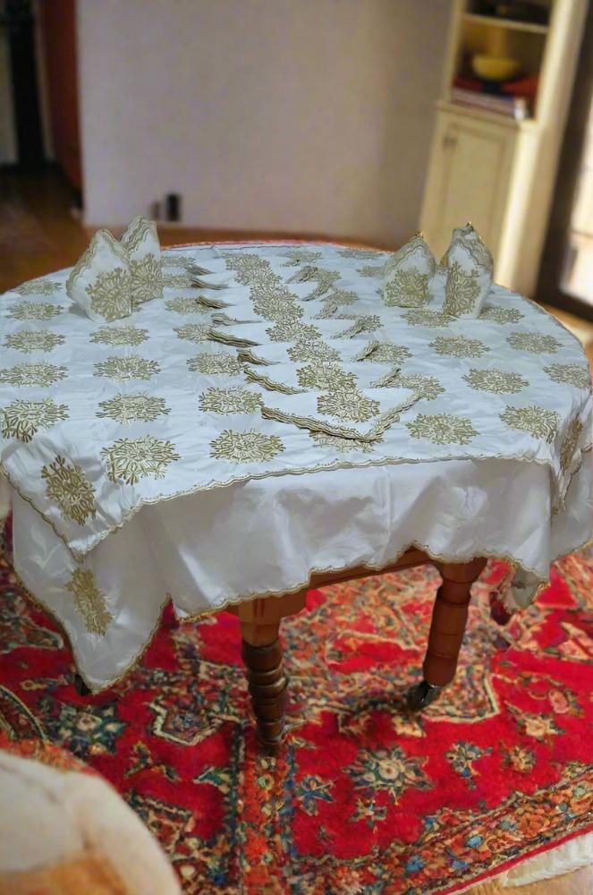 Embroidered 2 round piece Moroccan Tablecloth in Gold