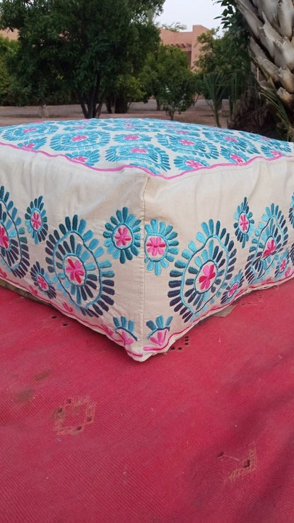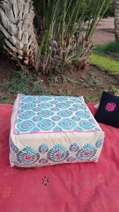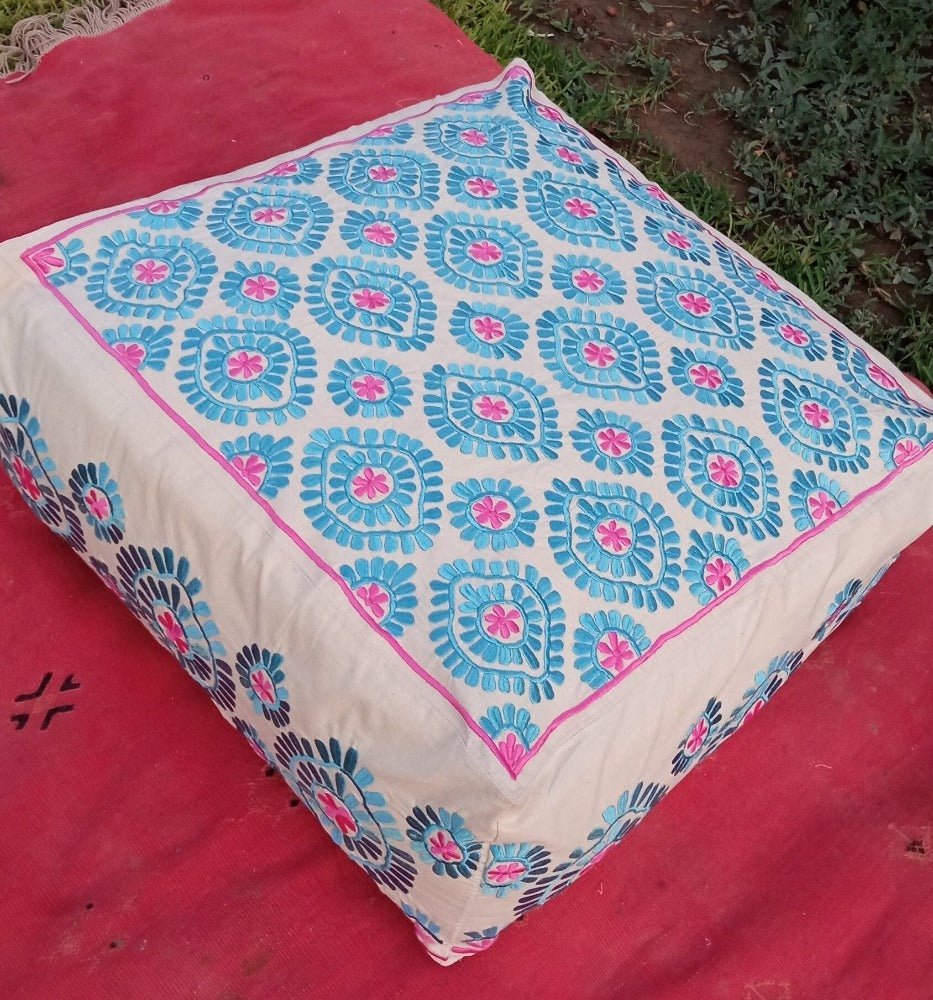 Embroidered square blue and pink Floor Seating