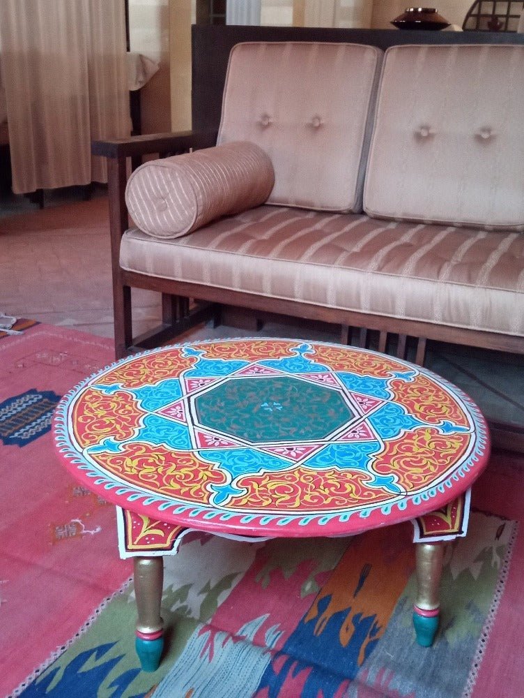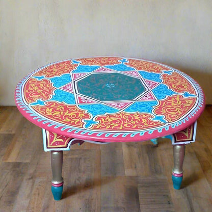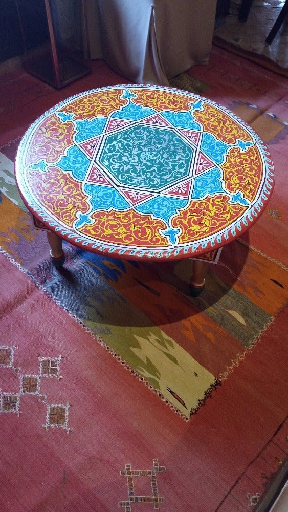Round painted Moroccan Coffe table, Red Luxury Moroccan round wooden table, Original Moroccan handmade table, painted stools, Moroccan big table, Moroccan furniture, painted Moroccan furniture, coffee table, tea table, Morocco coffee table, table basse coloreé, Wooden side table, Christmas table, painted nightstand