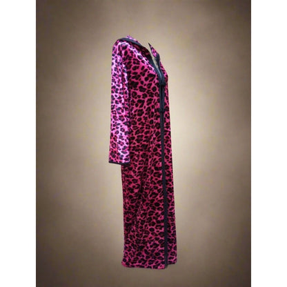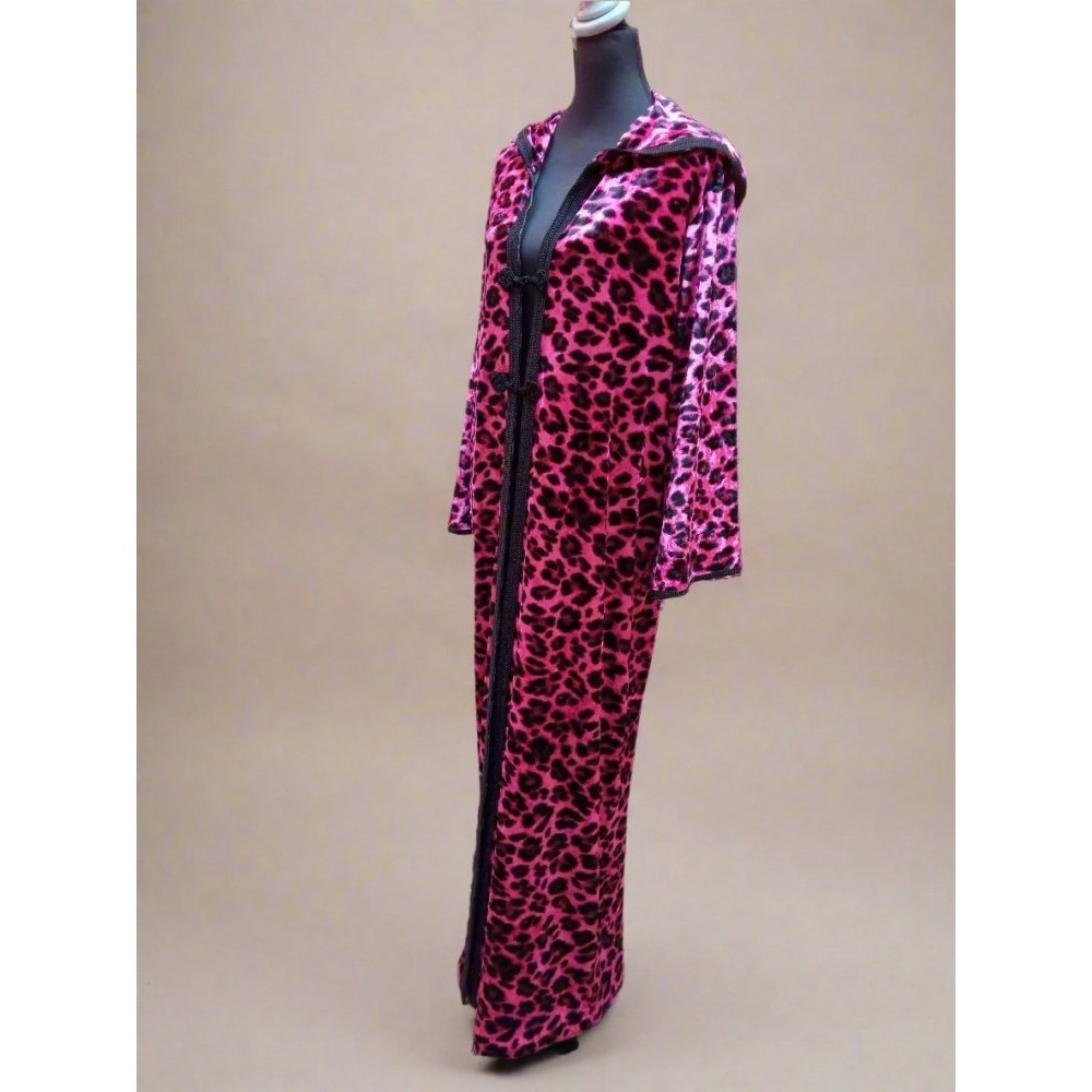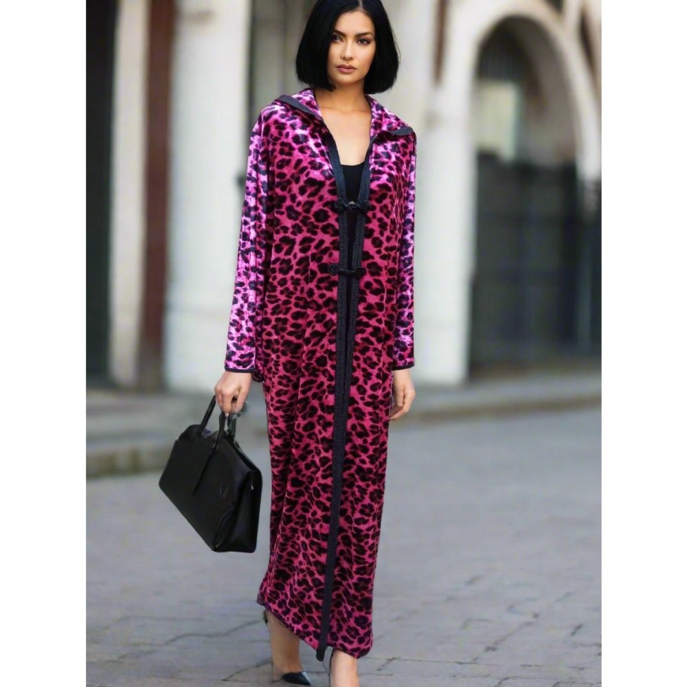Handmade Moroccan Velvet Djellaba - Hooded Leopard Kaftan