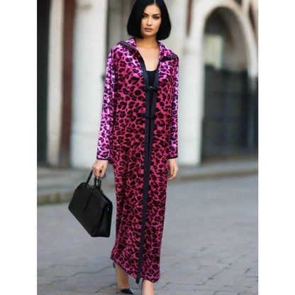 Luxury Leopard Loose-Fit Kaftan with Hood - For sale