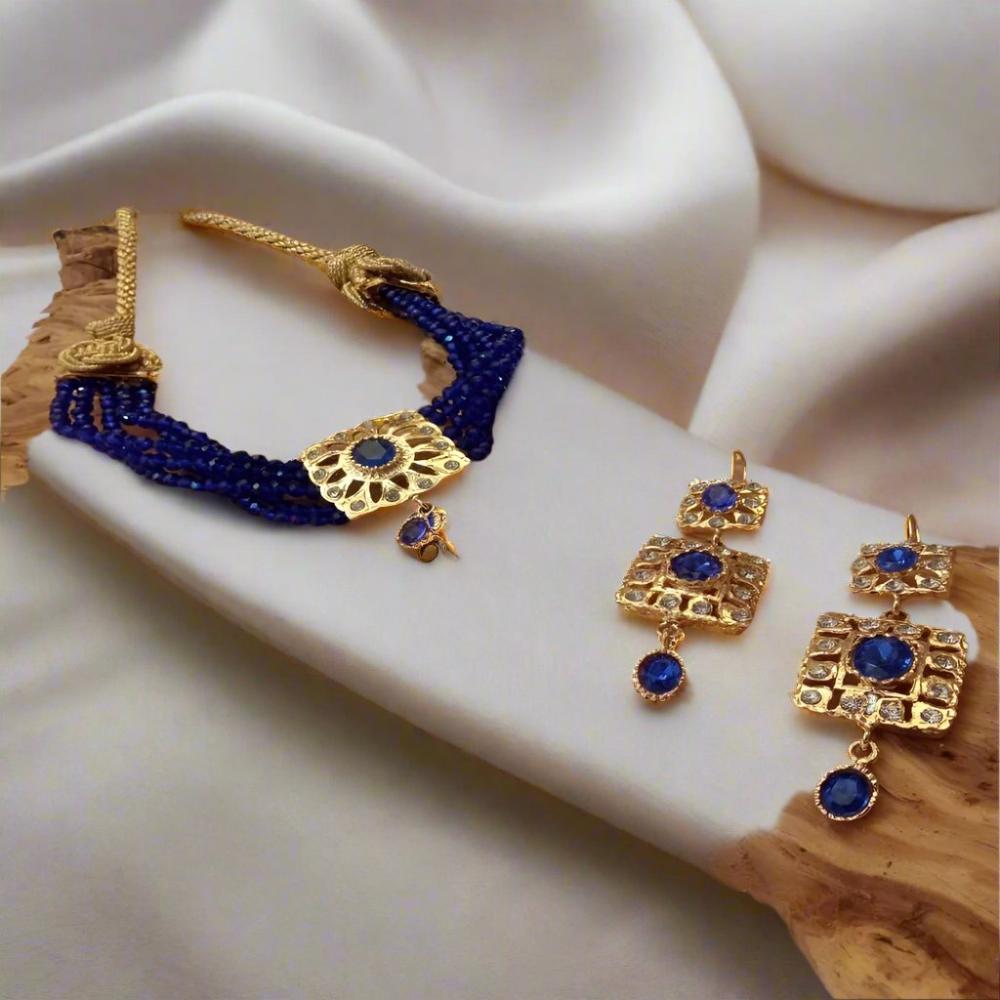 Moroccan Bridal Jewelry Set - handcrafted gold and blue wedding necklace + earrings