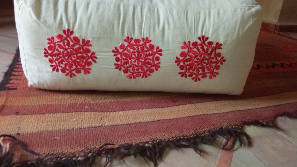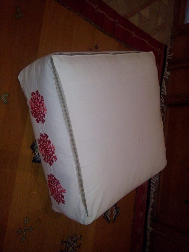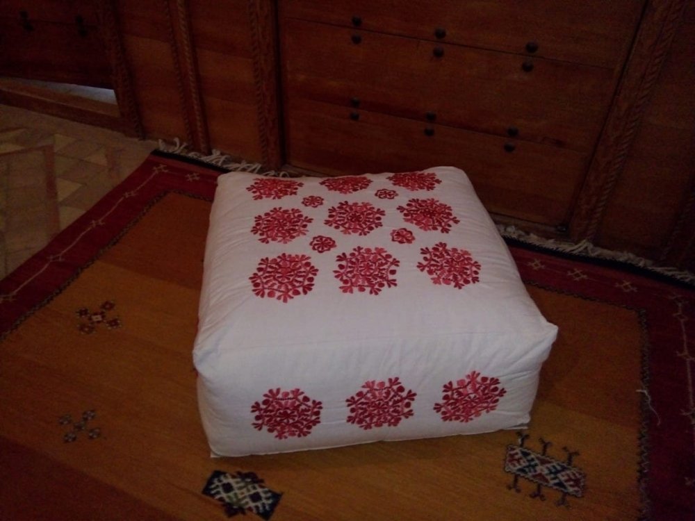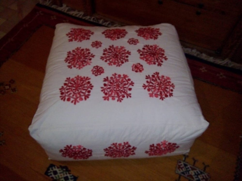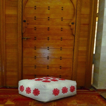 A unique square design of Moroccan cotton floor pillow/cushion, Red embroidery "Rbati" Handmade, pouf moroccan stuffed, Moroccan ottoman pouf, pouf handmade