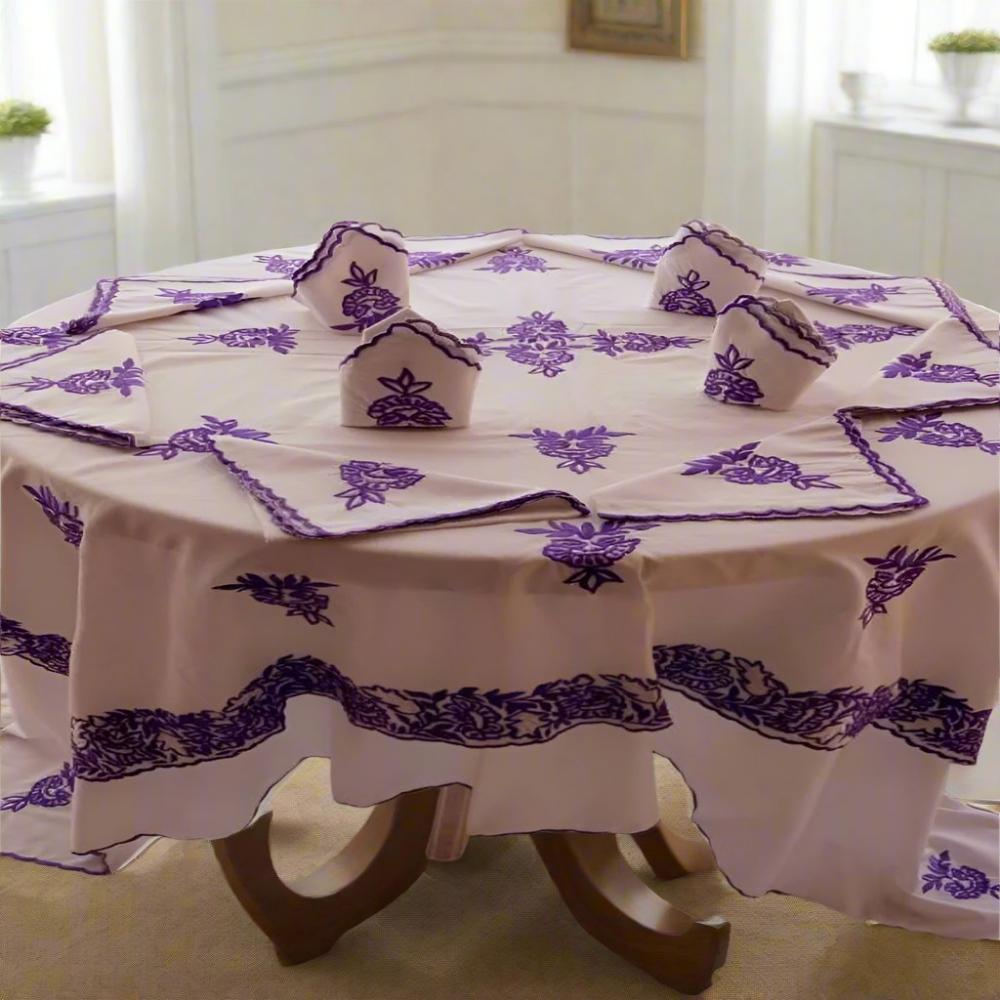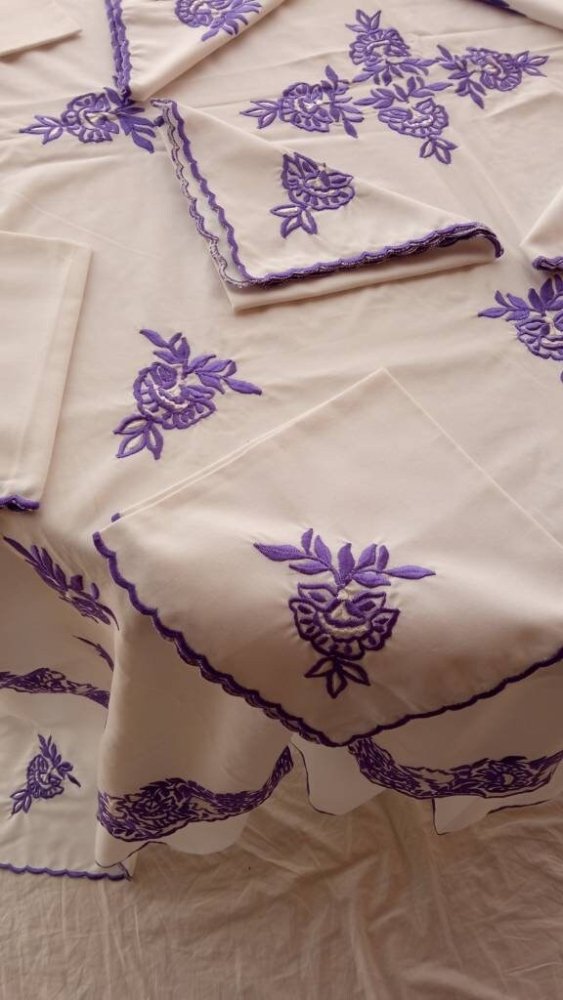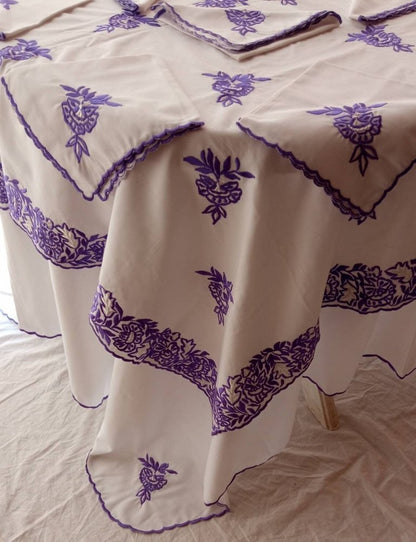 Cotton Tablecloth, tablecloth purple, white tablecloth, Vintage tablecloth, Cotton tablecloth, Moroccan Embroidery, table napkins