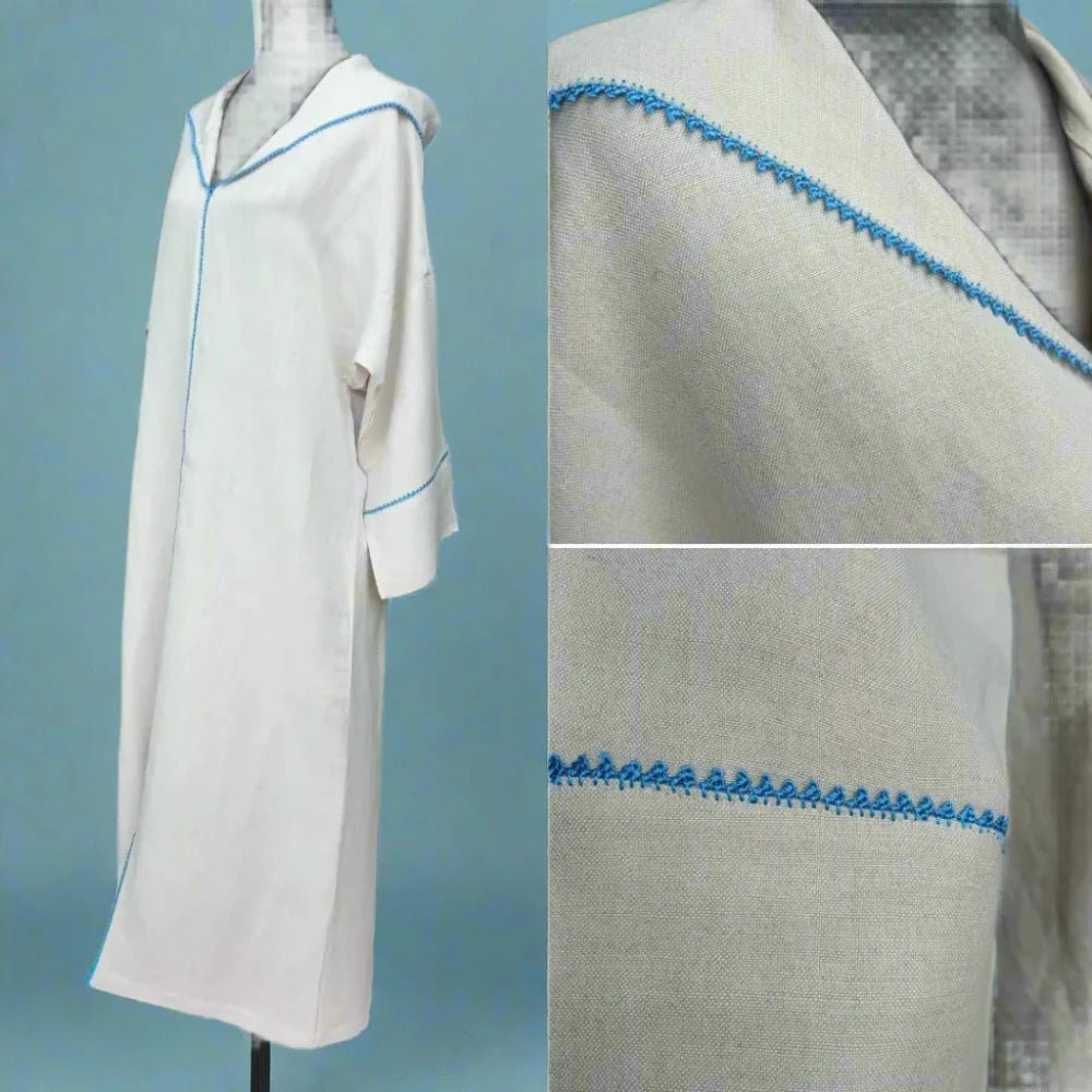 Natural embroidered Linen Moroccan Djellaba