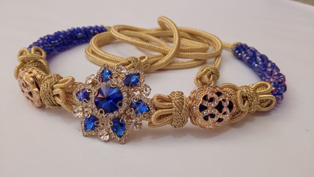Introducing our exquisite Gold Moroccan Belt (Majdoul), a true embodiment of Moroccan artistry and elegance. Handcrafted with meticulous attention to detail, this belt is adorned with dazzling stones and crystals, making it a standout accessory for any ensemble.