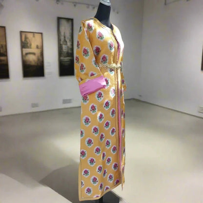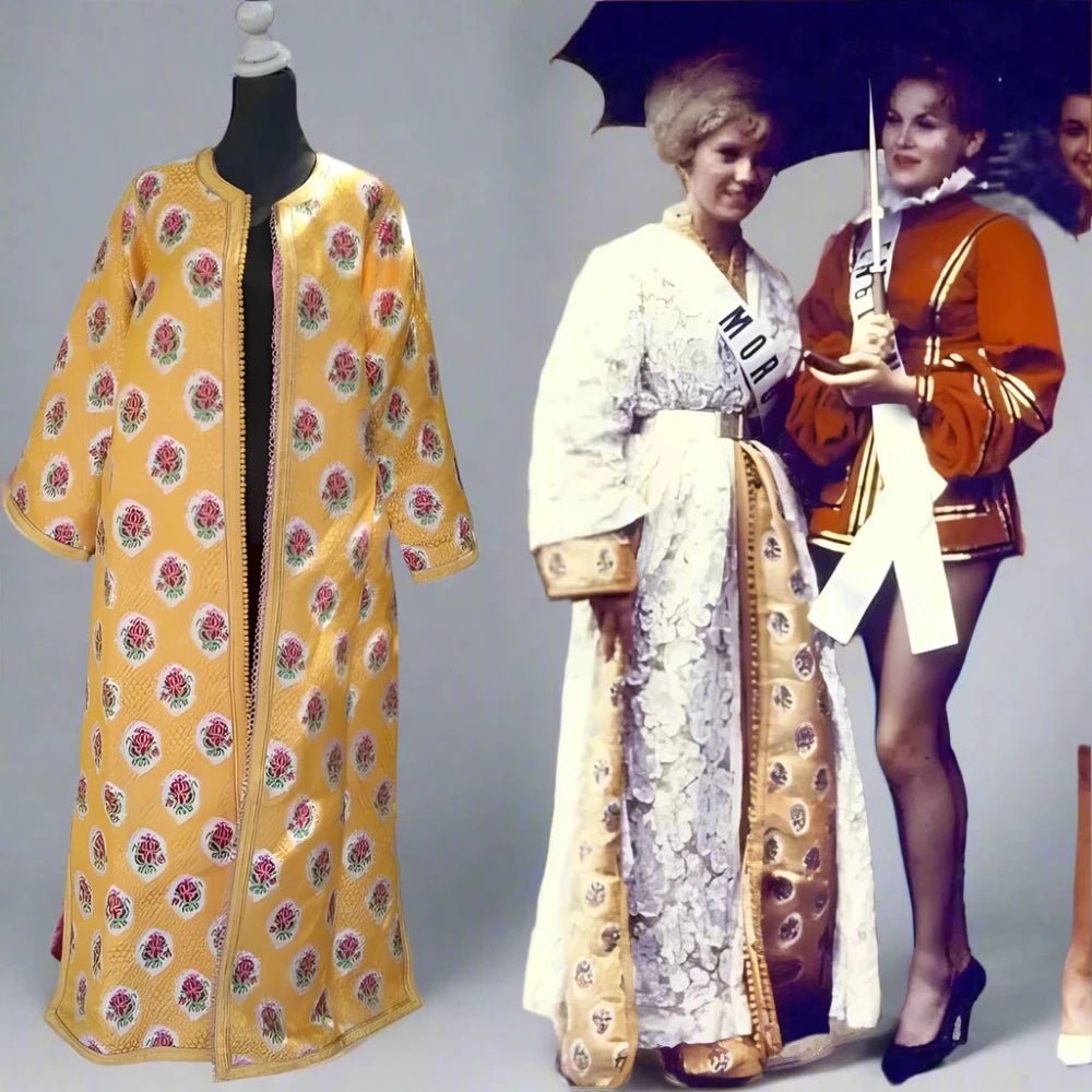Introducing the 19th Islamic Caftan Brocade "Khrib", a breathtaking creation combining rich cultural heritage and exquisite craftsmanship. Designed exclusively for weddings, this opulent caftan is the perfect blend of tradition, sophistication, and luxury.