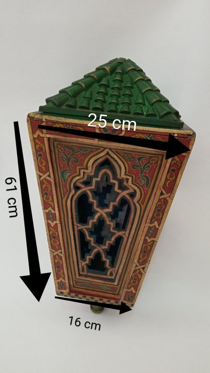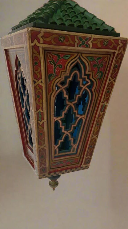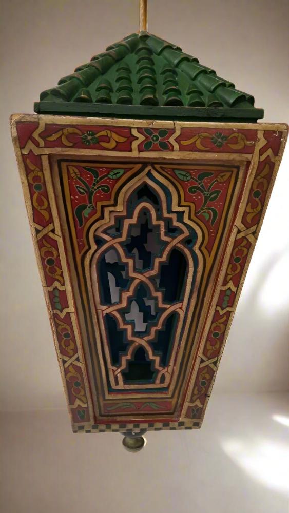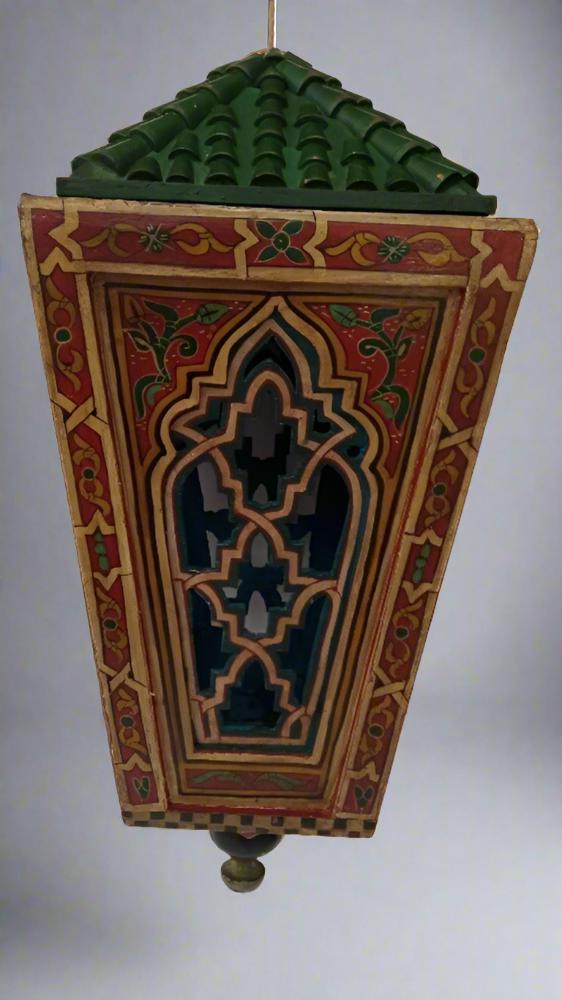 Authentic rare Moroccan hand-painted lamp in green and red (the color used in Marakshi Palace like in Bahia Palace)