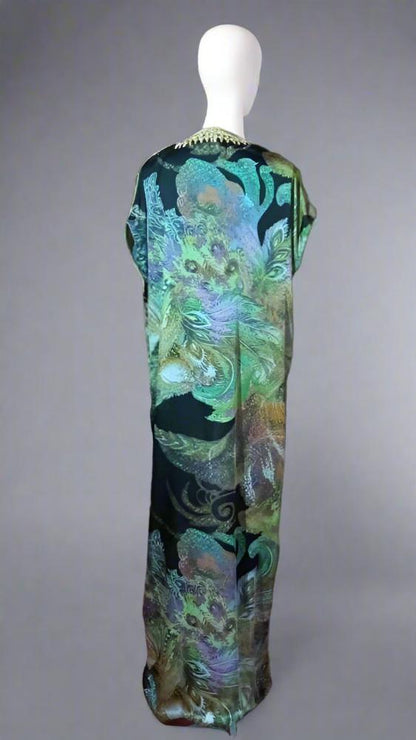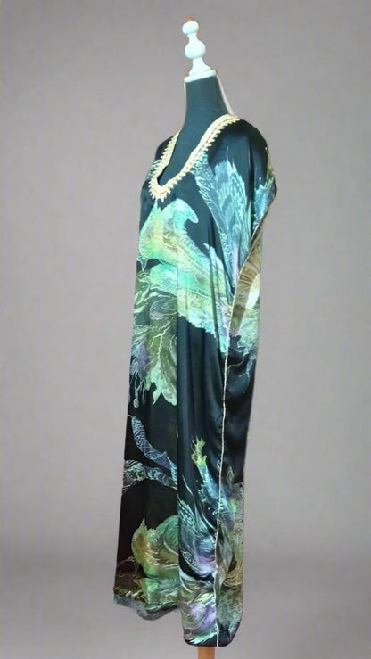 Satin silk embroidered V neck kaftan with Gold / Gandoura