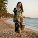 Gandoura for women, Black and Gold silk Kaftan for summer, maxi v-neck dress, embroidered Caftan with Gold