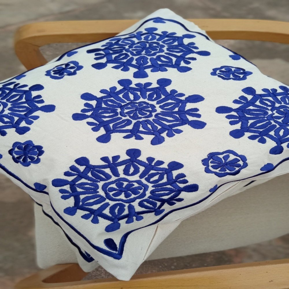 What kind of Fabric these Moroccan Blue Throw Pillows are made from?