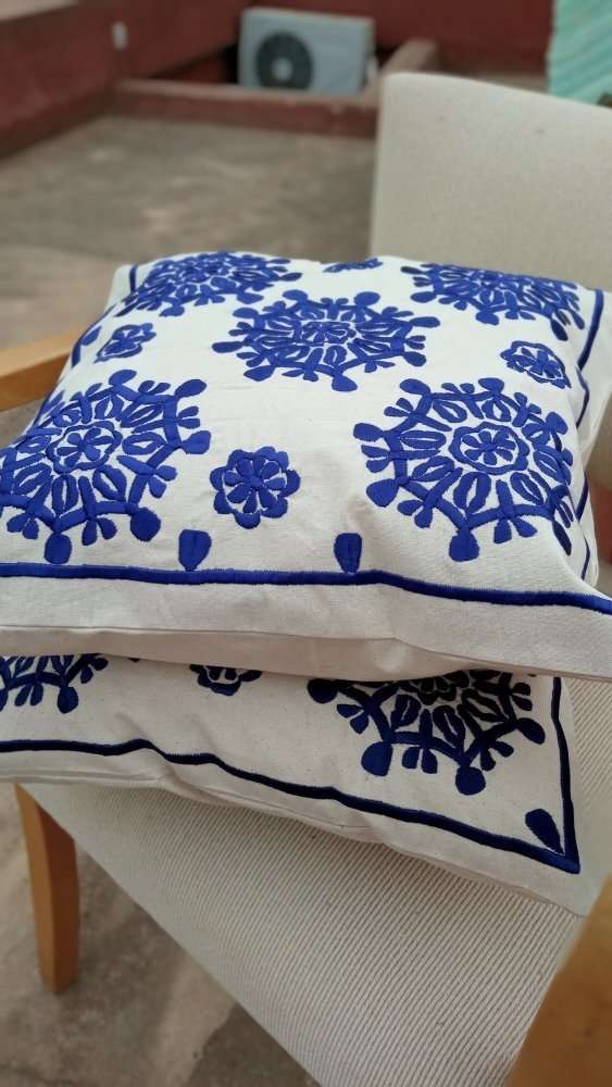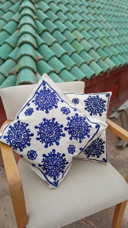 Set of 2 Blue Embroidered Moroccan Throw pillows