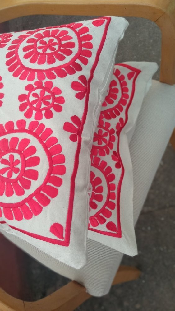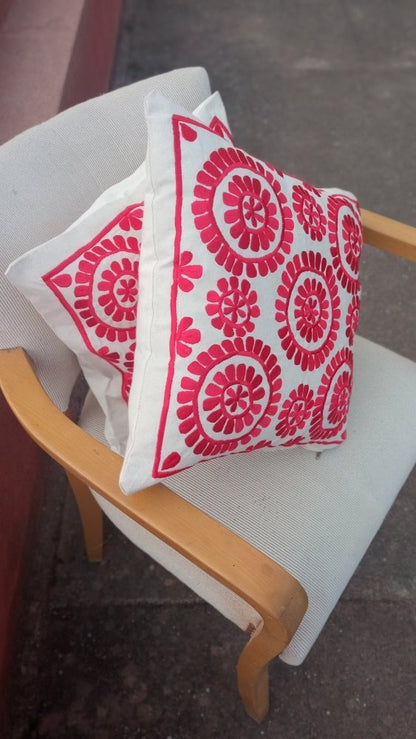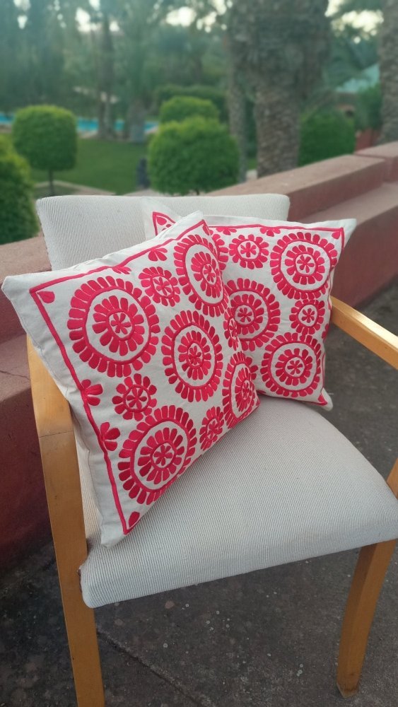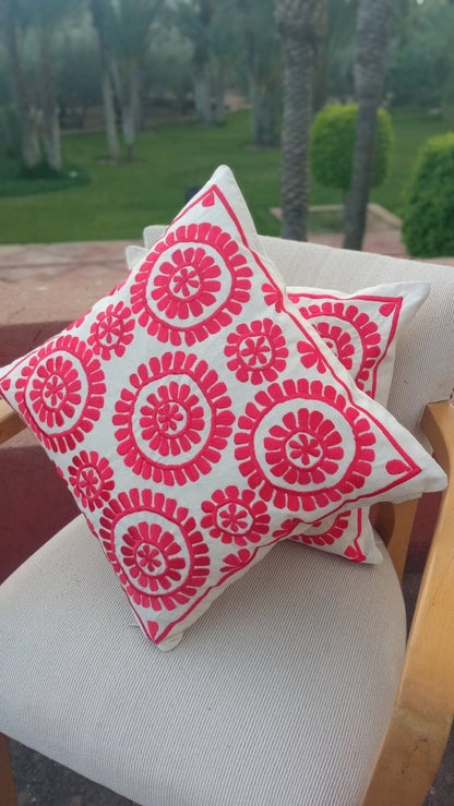Set of 2 RED Embroidered Moroccan Floral Throw Pillows