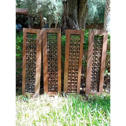 Discover our set of four meticulously hand-carved vintage rectangle Mashrabiya Moroccan windows.