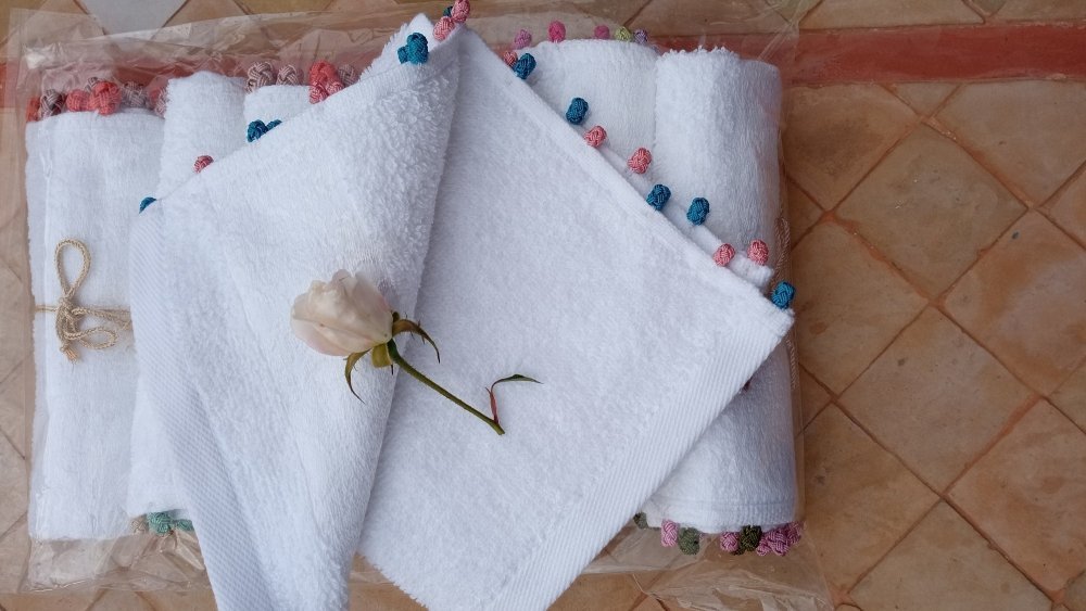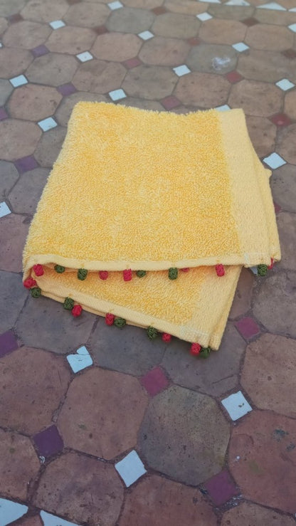 Set of 6 Moroccan Wash Towels, pom-pom Towels, Fouta, decorative towels, Facecloth cotton towel, bathroom towel, baby's towel, guest's towel, colorful towels, gift for her, gift for him, cat towels, set of Arabic towels, hand-embroidered towels,