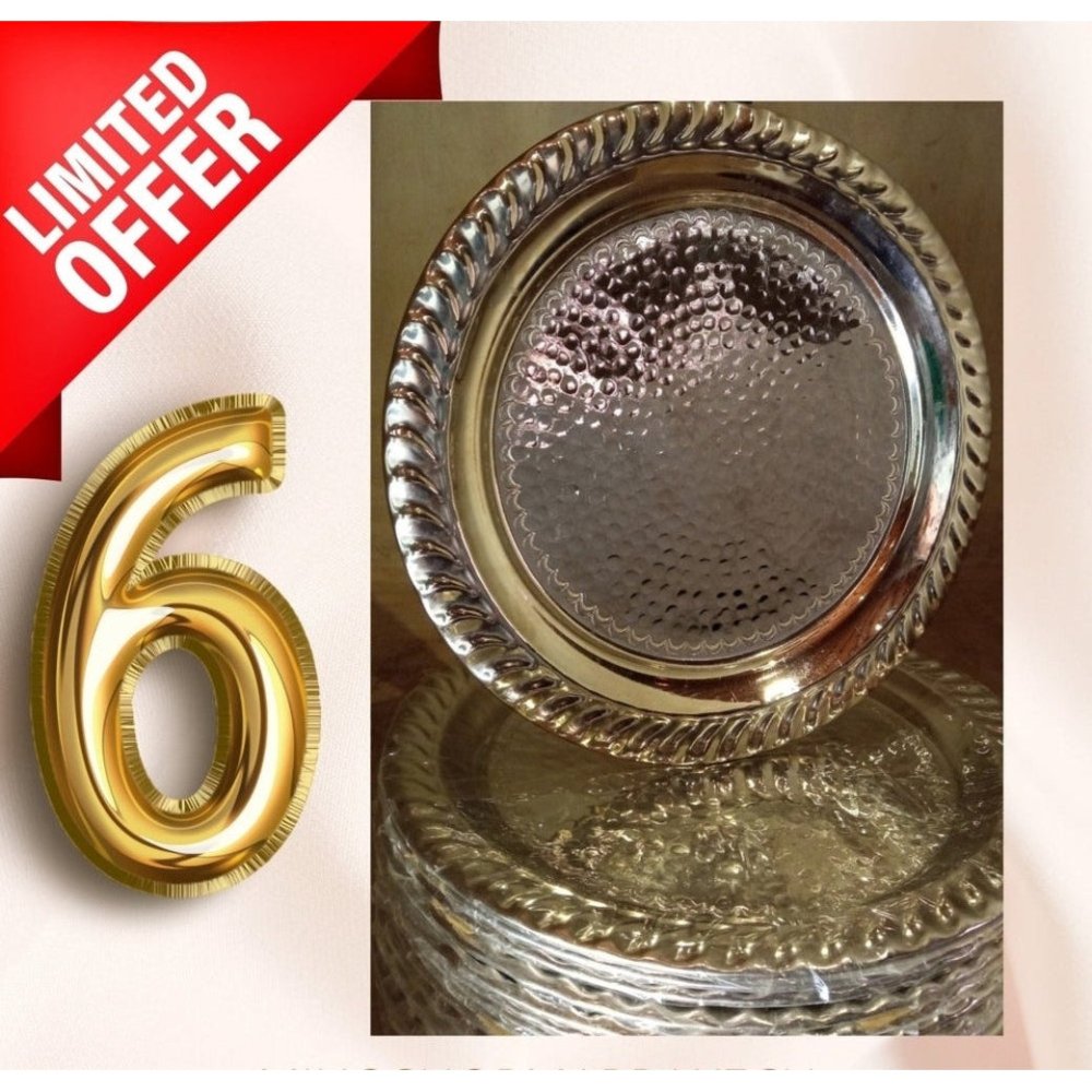 set of 6 beautiful Art pieces, Moroccan Handmade metal plates tray, Moroccan Handmade Hand Hammered Design Brass, hand-carved tray silver plated from Marrakech Morocco, Moroccan sweet tray serving, Handcraft Marrakchi silver serving
