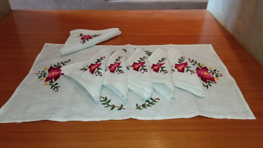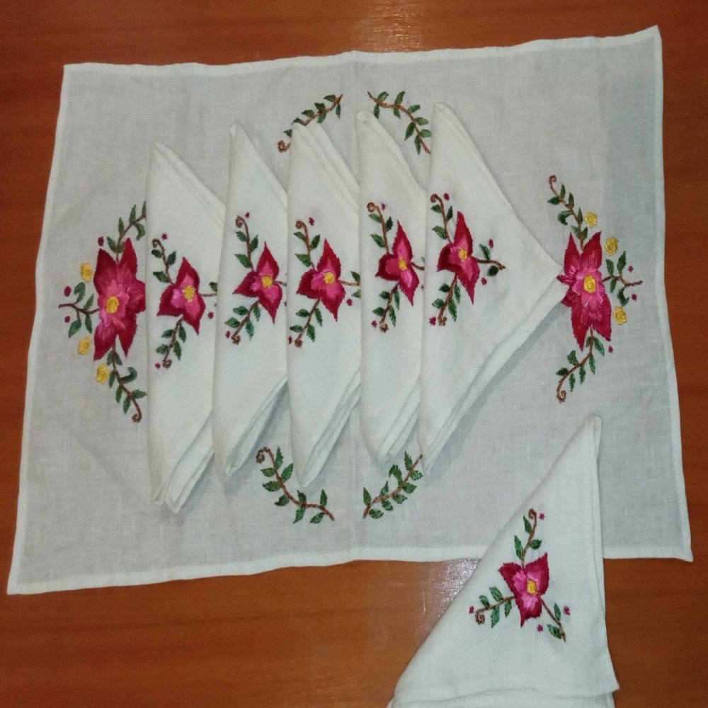 Spectacular Embroidered Linen Placemat with 6 napkins
