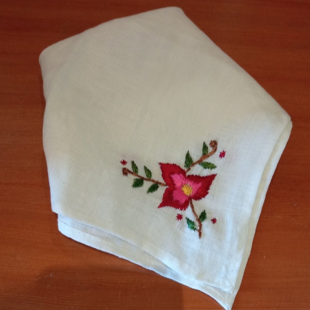 Rectangular white linen Moroccan embroidery pattern Noel colors red and green and dimension 51×31 cm.