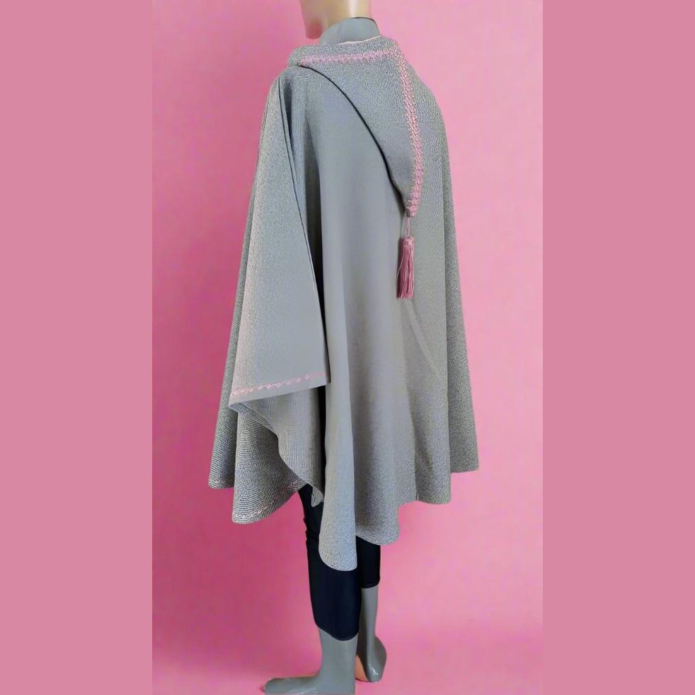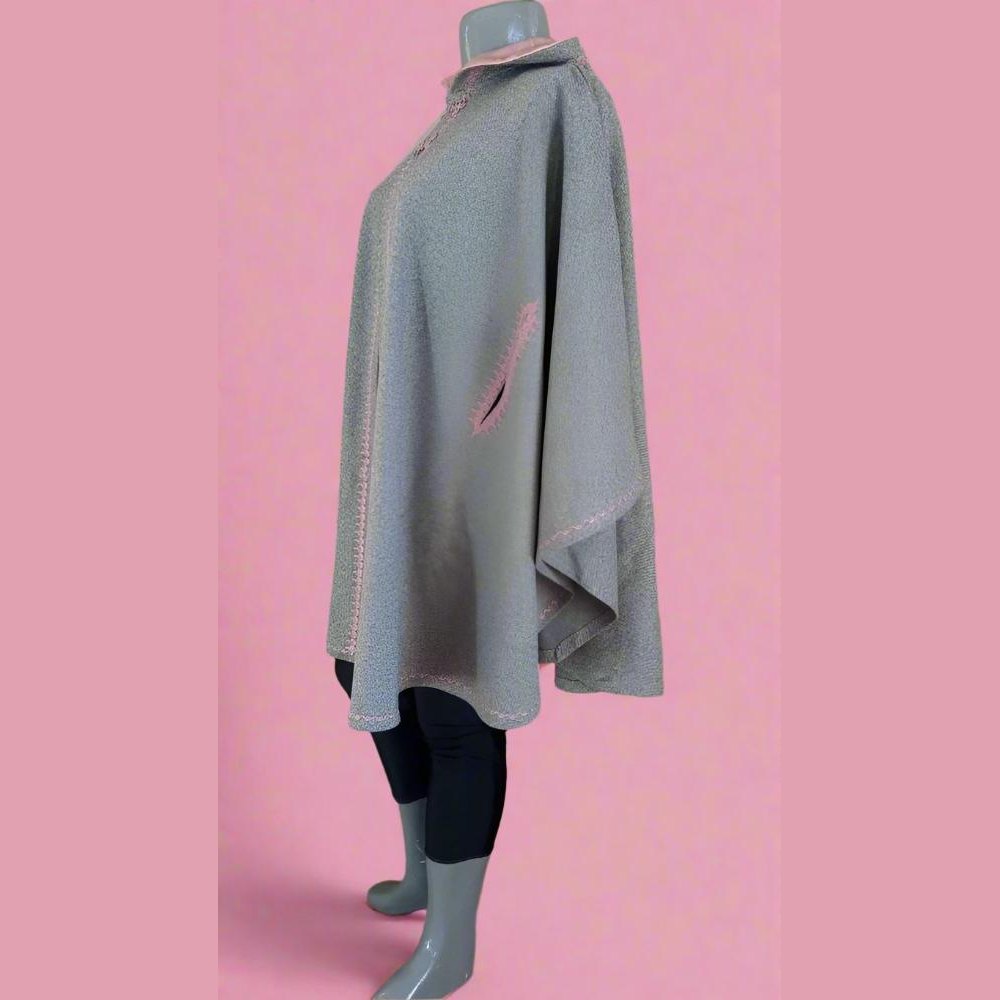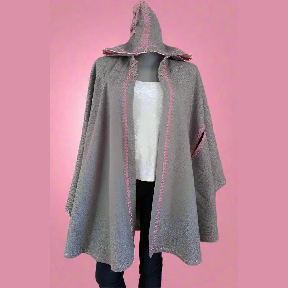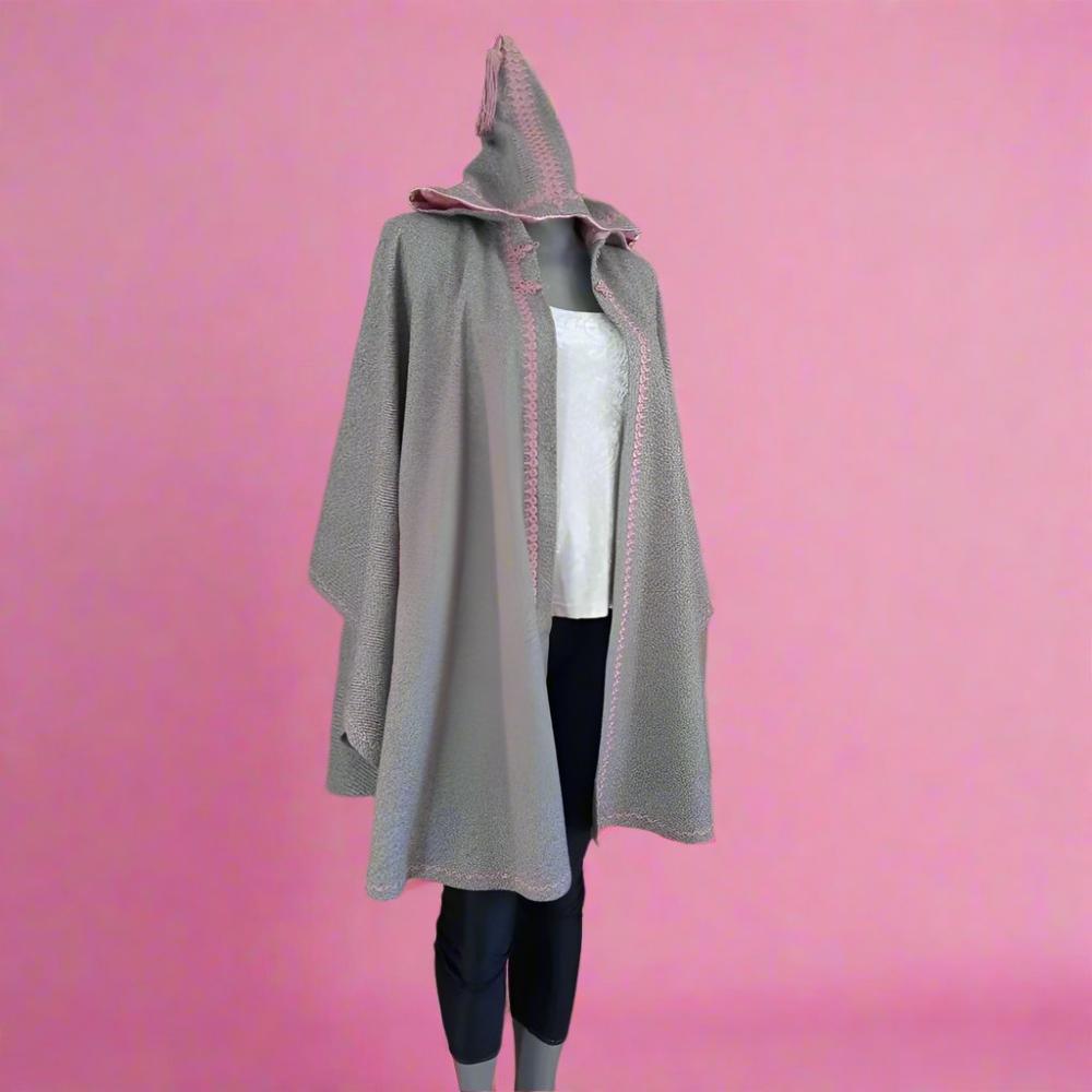 Moroccan Gray and pink embroidered Hooded Cape -SILHAM