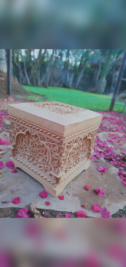 • Crafted from high-quality cedar wood, this box features intricate carvings that showcase the skilled craftsmanship of a Moroccan artisan (a student of my grandfather)