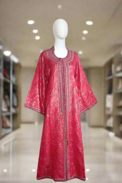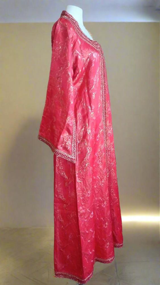 Metallic red and gold brocade maxi wedding kaftan dress hand-made by Moroccan artist