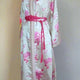 The caftan is made in a subtle metallic floral patterned brocade with shades of gold, princess long wide Double sleeves, fully front white thread buttoning with hundred of mixed (white and pink) hand-knotted looped buttons running down the center from the neckline to the hemline (can't be opened)